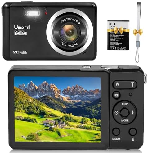 Digital Camera, Vmotal FHD 1080P Digital Camera for Kids Camera Boys and Girls – 20MP Compact Point and Shoot Camera Vlogging Camera YouTube TikTok for Kids Teens Students Beginners Seniors(Black)