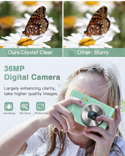 ★☆【𝟮𝟬𝟮𝟯 𝗡𝗲𝘄 𝗥𝗲𝗹𝗲𝗮𝘀𝗲𝗱 𝗞𝗶𝗱𝘀 𝗖𝗮𝗺𝗲𝗿𝗮】With its impressive 36.0-megapixel resolution, this digital camera significantly elevates image clarity when compared to other cameras designed for children and kids. It is an excellent choice as a Christmas present, birthday gift, graduation gift, or holiday gift for teenagers, kids, and students, boys and girls.