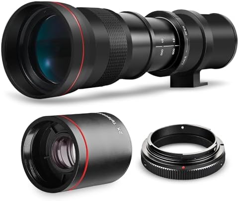 High-Power 420-1600mm f/8.3 HD Manual Telephoto Zoom Lens for Canon EOS 80D, EOS 90D, Rebel T3, T3i, T5, T5i, T6i, T6s, T7, T7I, T8I, SL3, EOS 70D, EOS 5D, EOS5D IV, EOS 6D II, EOS 7D II SLR Cameras