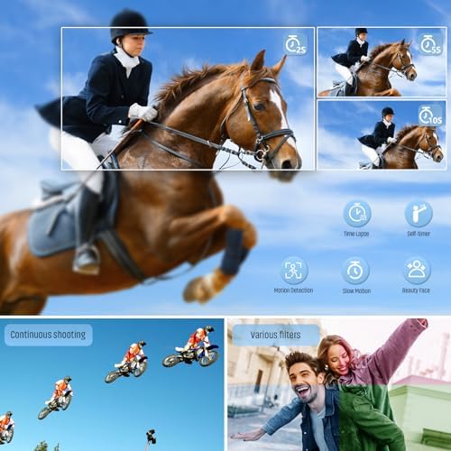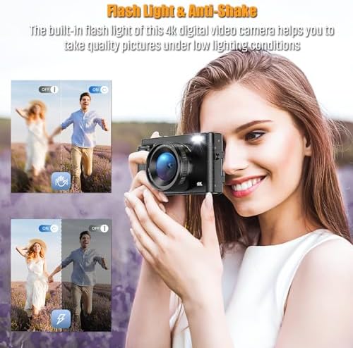 【Multifunctional digital video camera satisfies you with interesting shots】- This 4k digital camera for photography has a built-in flash to help you take high-quality photos in low-light conditions. The Anti-shake function will not let you miss any details when traveling. In addition, there are also 20 photo styles, time-lapse (2/5/10S), 3-continuous shooting, slow motion, and many other features for you to unlock, so you can explore more possibilities for taking photos.