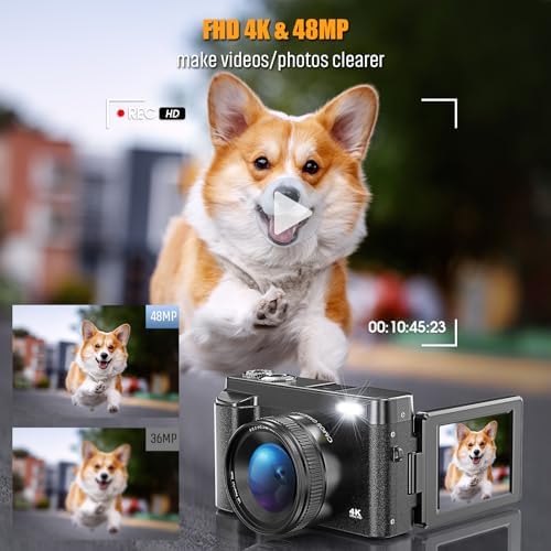【FHD 4K & 48MP Autofocus make videos/photos clearer】- This 4K digital camera uses an upgraded CMOS image sensor system to easily capture 48MP HD and true color images. The innovative autofocus won’t let you miss any vivid detail, capturing memorable moments with just half a press of the shutter button.