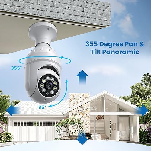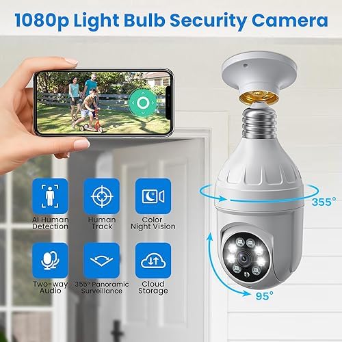 1080P Smart Light Bulb Home Security Camera Outdoor, Color Night Vision, AI Human Detection, 2-Way Audio, Cloud Storage, 355-degree Rotation, Indoor Surveillance, 2.4GHz WiFi