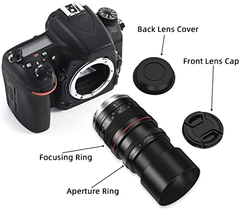Compatible with both full frame and APS-C format cameras, this lens provides a 35mm focal length equivalence of 202.5mm when used on APS-C cameras.