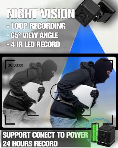 ◨◨【7/24 HOURS Loop Recording】The mini camera won’t stop record due to full of Micro SD card . When the memory card is full, the newest file will overwrite the previous file, and the device will continue recording. 7/24 days continue working while the camera is connecting with charger.QUALITY ASSURANCE, 30-day refund guarantee, and 1-year limited warranty. 7/24 hour customer service support brings you the best shopping experience.