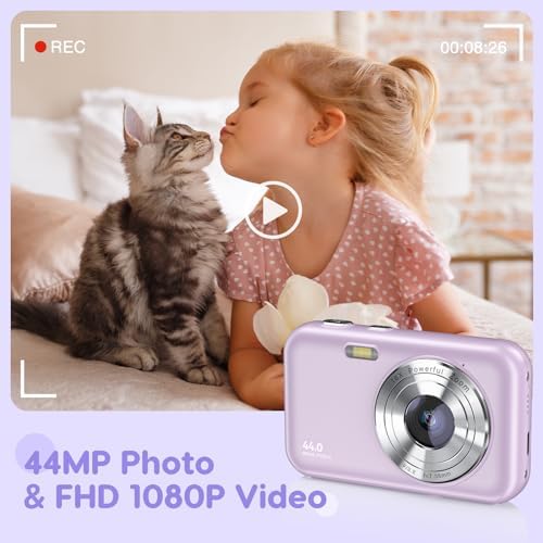 📷【1080P & 44MP Digital Camera】The kids digital camera with CMOS image sensor delivers high-quality 44MP photos and FHD 1080P resolution videos, capturing every detail with precision. The kids camera 16X digital zoom feature allows you to zoom in or out image/video by clicking the T/W button.