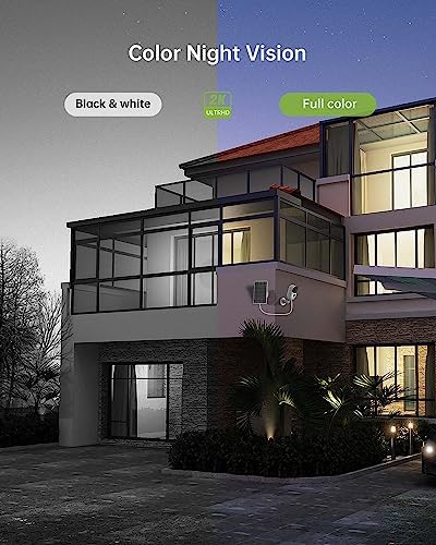 【2K 3MP Color Night Vision】: Despite its compact size, our solar camera security outdoor is designed with meticulous attention to detail. The 2K resolution enhances picture clarity, while the 4X zoom-in capability enables you to observe finer details. By utilizing cutting-edge floodlight technology, this home security cameras provides improved full-color night vision, capturing clearer images even in low-light conditions.