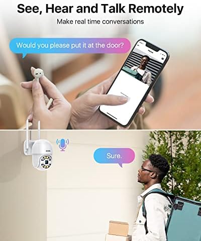 (3). [ Auto Motion Tracking with Wider Coverage & Two Way Audio ] __ Expand your security coverage with the rotation of a vertical 140 degrees and a horizontal 355 degrees, which leaves no blind spot. It also intelligently locks on and tracks targets on the move automatically. Built-in speaker and microphone allow for 2-way audio functionality, you can also deter or welcome visitors by choosing preset or personalized voice messages. Note: The camera only supports 5X digital zoom.