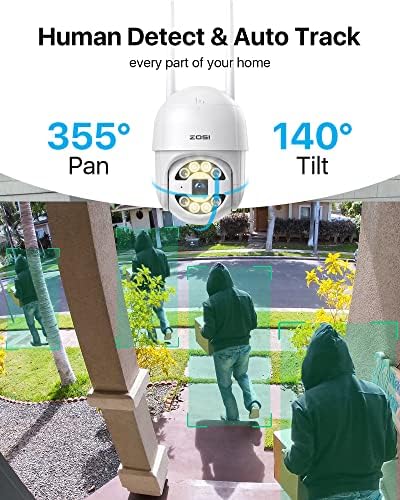 ZOSI C289 2K 8CH Wireless PT Security Camera System, 4 x 3MP WiFi Auto Track Camera Outdoor, Color Night Vision, Plug-in, 5X Digital Zoom, AI Human Vehicle Detection, Siren Alarm, 1TB HDD, 24/7 Record