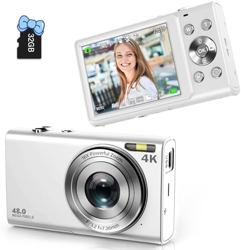 Digital Camera 4K Auto Focus Vlogging Camera 48MP 16X Digital Zoom Digital Camera with 32GB Memory Card YouTube Portable Compact Small Video Camera for Teens Adult Beginner Kids
