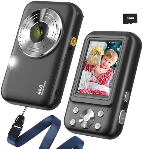 Digital Camera, FHD 1080P Digital Camera for Kids Teens, 44MP Point and Shoot Camera with 32GB Card 16X Zoom Anti Shake, Digital Camera with Fill Flash, Compact Small Kids Camera for Kids Boys Girls