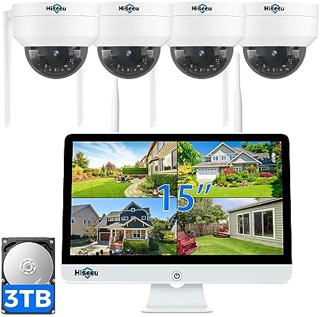 [3TB Storage] Hiseeu Security Cameras Wireless Outdoor System with 15″ LCD Monitor 10CH NVR,5MP PTZ Dome Security Cameras System,Explosion-Proof Auto Tracking 4pcs WiFi Camera