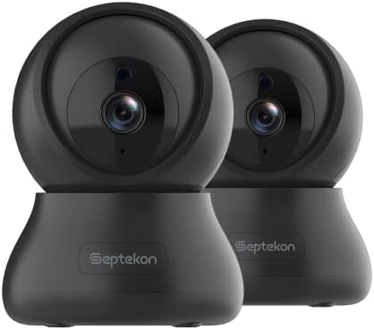 Septekon Indoor Security Camera 2K, 360°Pan Tilt Baby Monitor Pet Camera 2 Pack, 2.4GHz Wi-Fi Camera with Night Vision, Motion Detection, 2-Way Audio Siren, Cloud/SD Card, Works with Alexa, Black