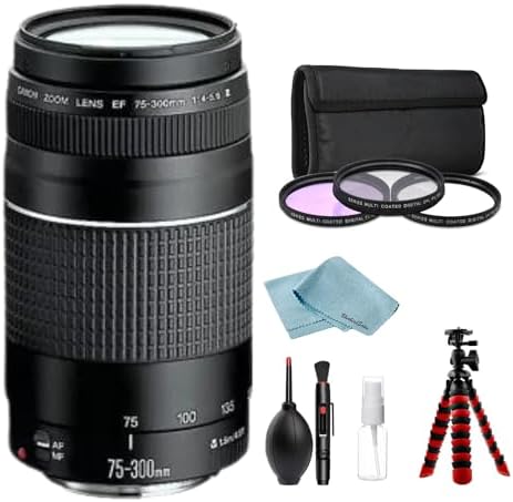 Camera EF 75-300mm f/4-5.6 III Telephoto Zoom Lens Bundle with BluebirdSales 3-Piece Filter Kit, Lens Cleaning Kit, and Flexible Tripod – Fast Autofocus DSLR Camera Bokeh Effect Lens