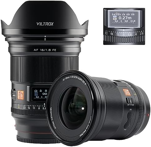 Product Description VILTROX 16mm AF F1.8 Auto Focus Full Frame FE Lens for Sony E Mount, Built-in LCD Screen STM Motor Internal Focus Large Aperture Portrait Focus Lens for Sony Camera, High Resolution & Sharpness and Quick Focus Suitable for Portrait/Building/Video Shooting Specification of VILTROX AF 16mm F1.8 Sony E-Mount …