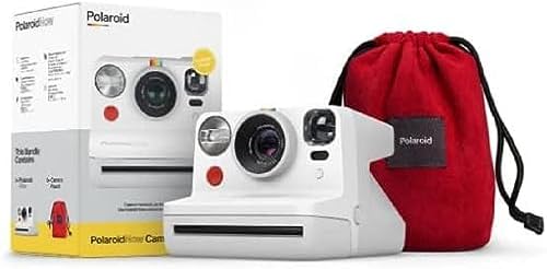 Polaroid Now Bundle with White Camera and Red Travel Pouch – Dual Lens with Autofocus, Rechargeable Battery – Compatible with i-Type and 600 Film