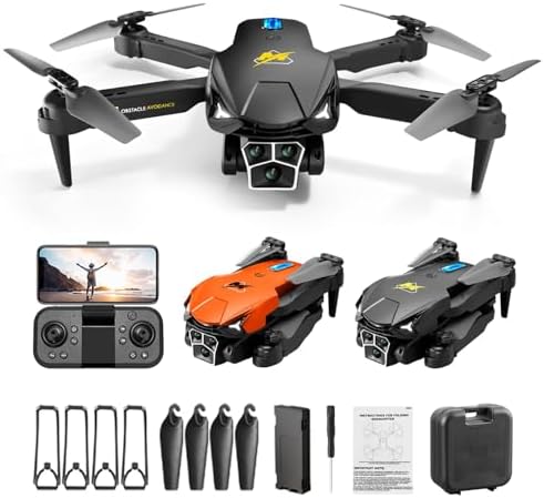 WiFi FPV Drone With 4K HD Remote Control With Three Camera HD Aerial Camera Folding Obstacle Avoidance Remote Control Airplane For Begginer,Man Gifts (Black)