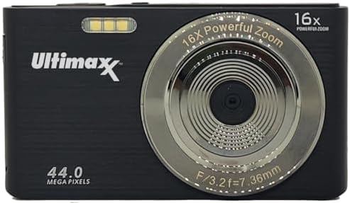 Ultimaxx 44MP Digital Compact Camera with 16X Digital Zoom, 2.4 LCD Auto-Focus Point and Shoot Digital Camera with 32GB SD Card, Portable Camera for Adults Boys Girls Teens Kids